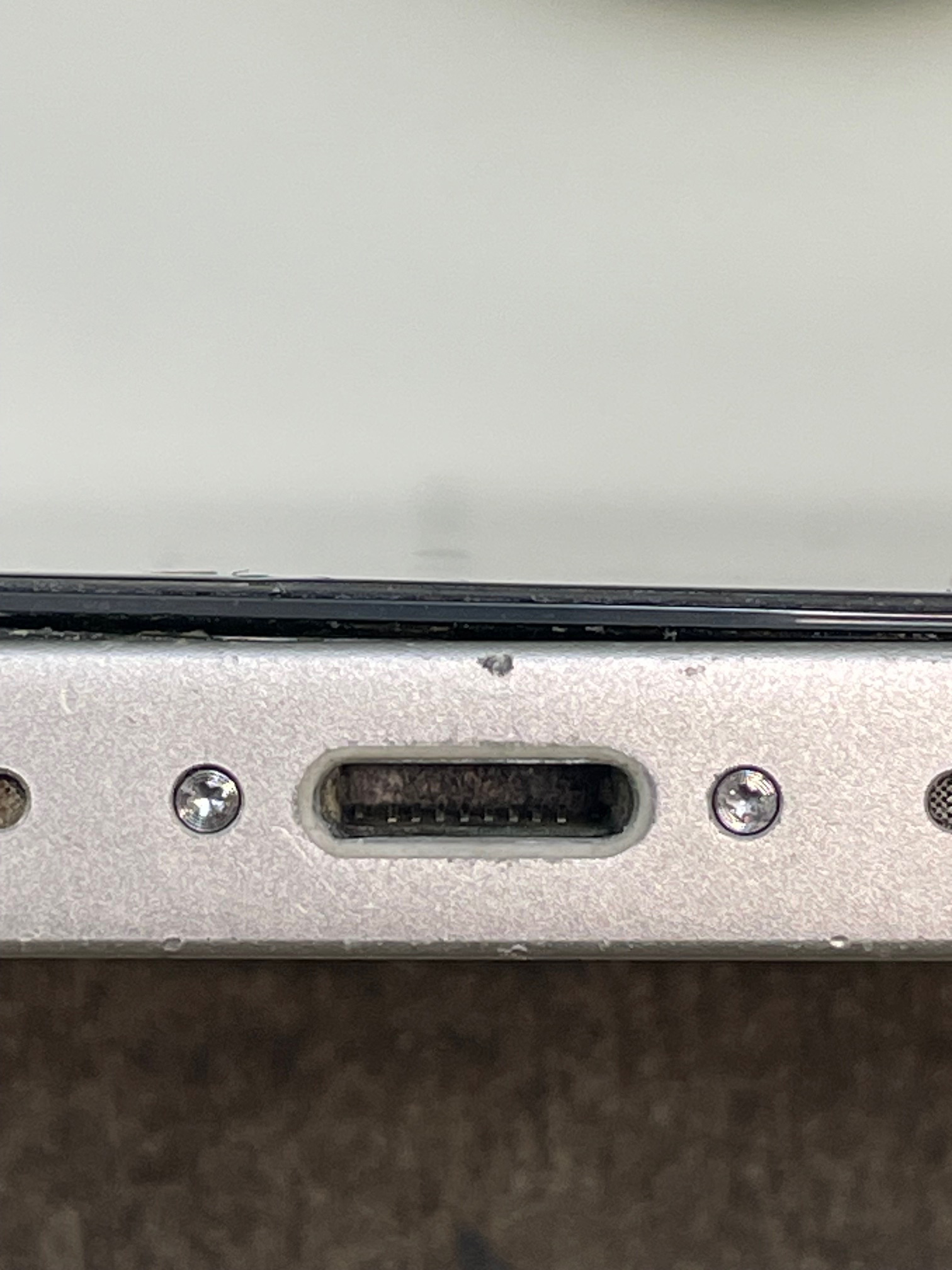 充電口下側の奥にケーブル接触部分があり底の方にホコリが詰まっています。