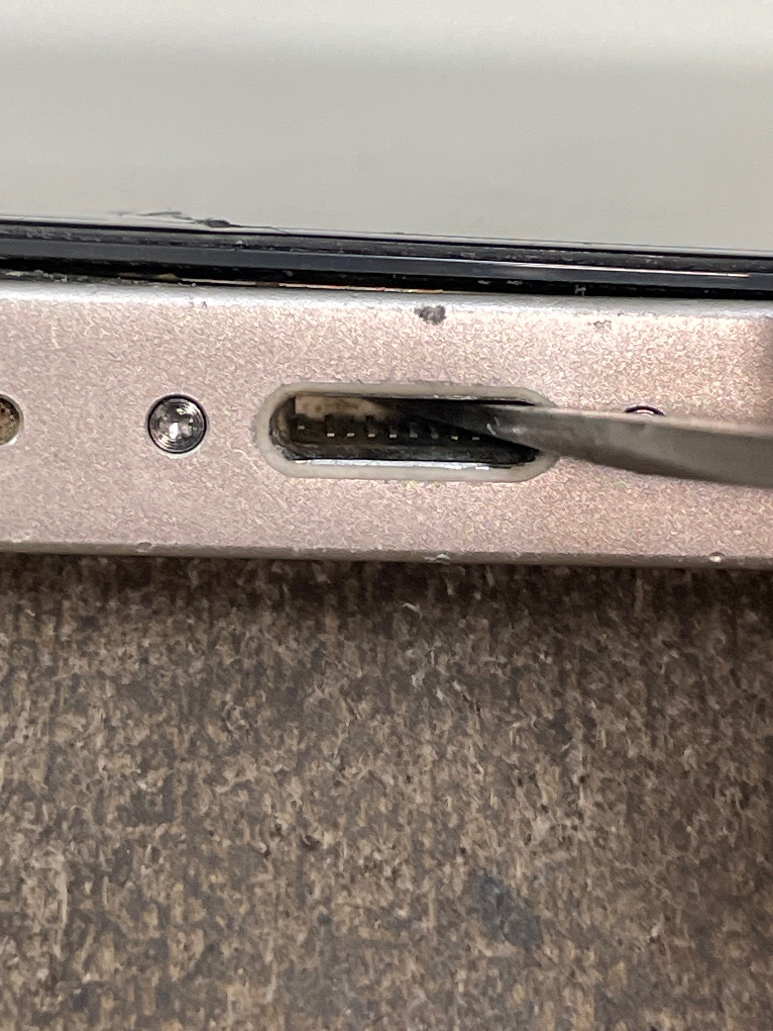 接触部分に触れないように細いピンセットでホコリを寄せます。
